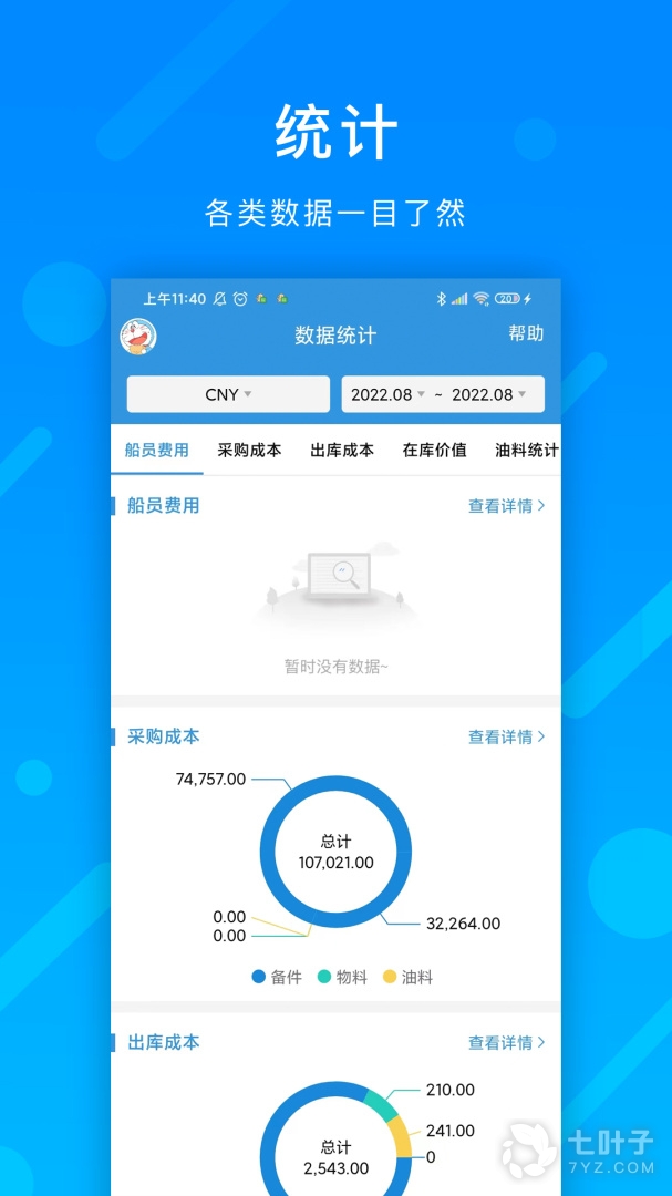 提供库存管理,随时掌握船舶商品库存信息,出入库情况;