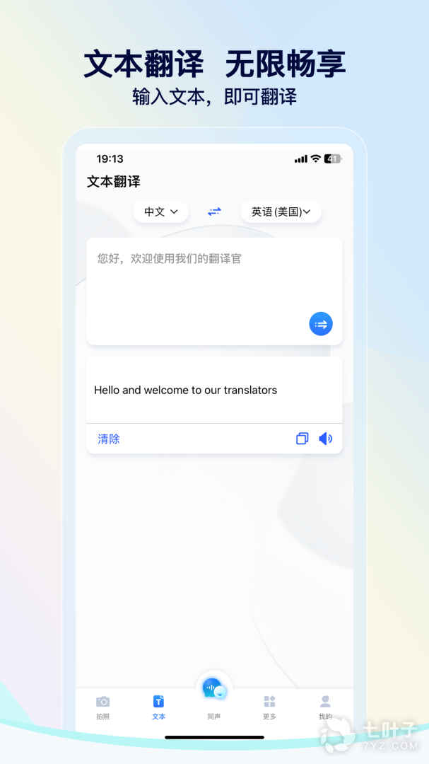 【文本翻译】输入文本即可翻译,支持107种语言翻译.并支持词典,您学习工作的得力帮手