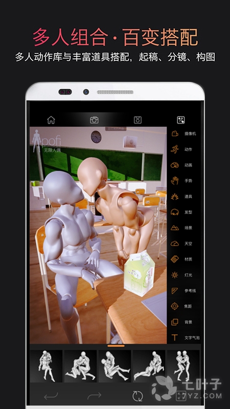 1、里面有丰富的人偶资源道具和场景参考很全面看的出来开发团队很用心设计的推荐更多想学习画画的朋友使用