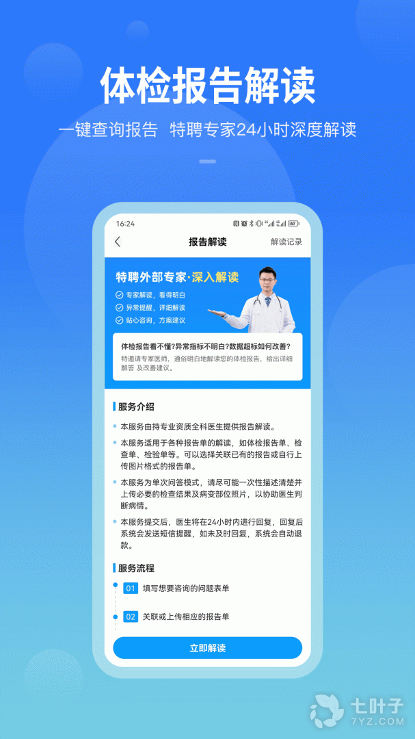 2000+医院体检报告轻松查,名医深入解读报告,针对异常项提供个性化健康方案;