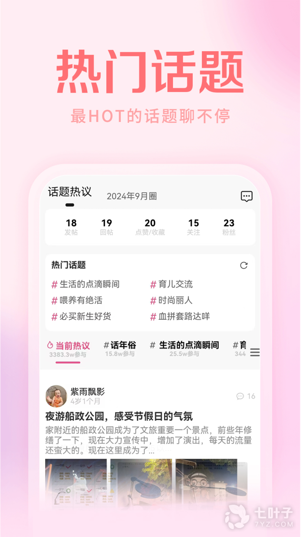 2、【社区】版块,有同龄圈、热帖等,为年轻辣妈提供基于同龄、同城和兴趣爱好的互动交流平台;