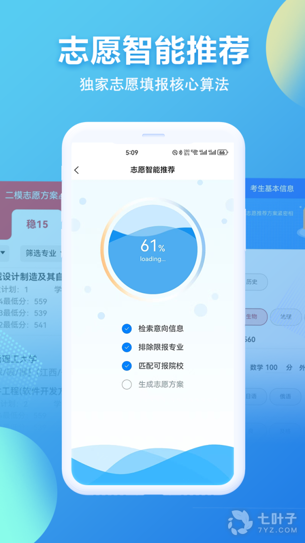 2、招考通高考志愿智能推荐软件,由招生考试通讯杂志社官方出品,收录很多学校的情况,根据用户的需求个性化推荐适合的专业和学校