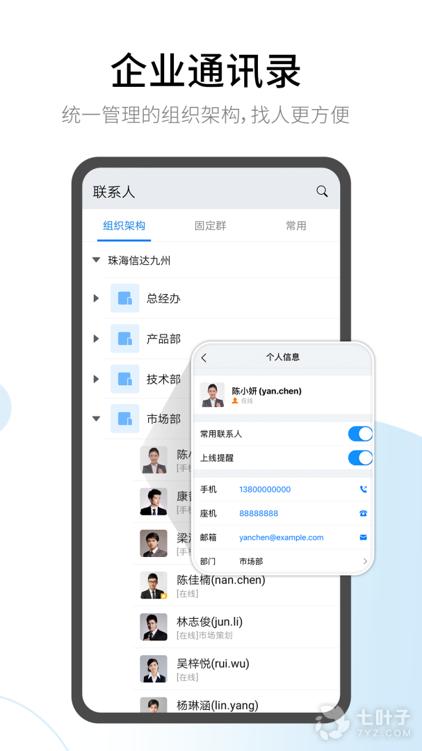 3、组织架构,把企业通讯录装在手机里,找人更容易