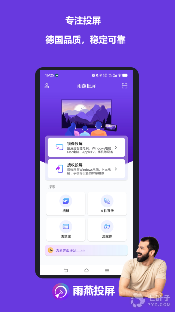 雨燕投屏,支持手机投屏电视、手机投屏电脑、电脑投屏电视、浏览器投屏等智能投屏方式,轻松投屏幕镜像。电视投屏、电脑投屏,无限投屏,多屏互动,一键投到大屏幕。