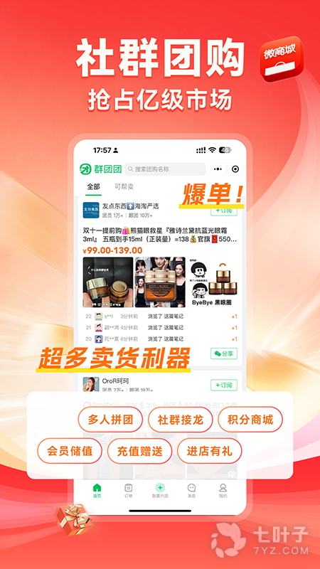 拥有开店功能,能够让用户建立属于自己的微商城;