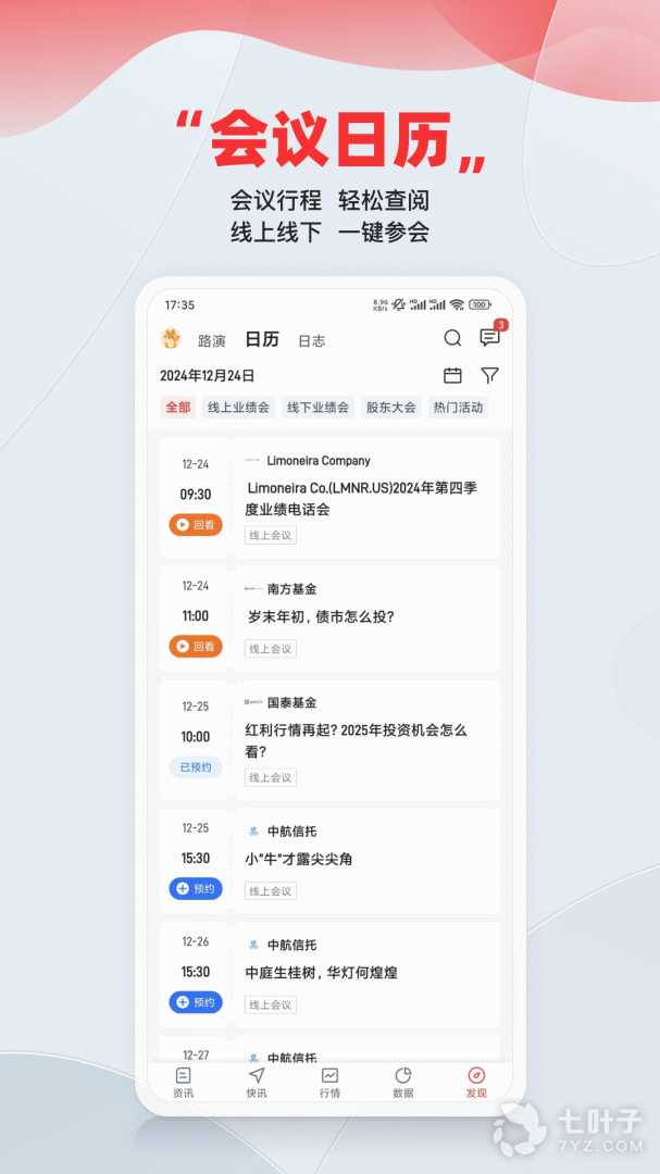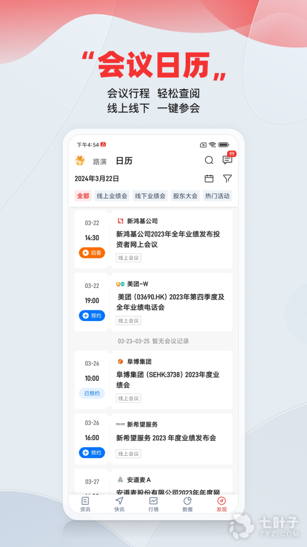 1、会议频道:全面搜集港美股上市公司会议信息,涵盖业绩会、股东大会、正反向路演、电话会议等各类信息,并获得众多上市公司授权,提供直接报名入口,优先帮助您获得宝贵的入场资格。