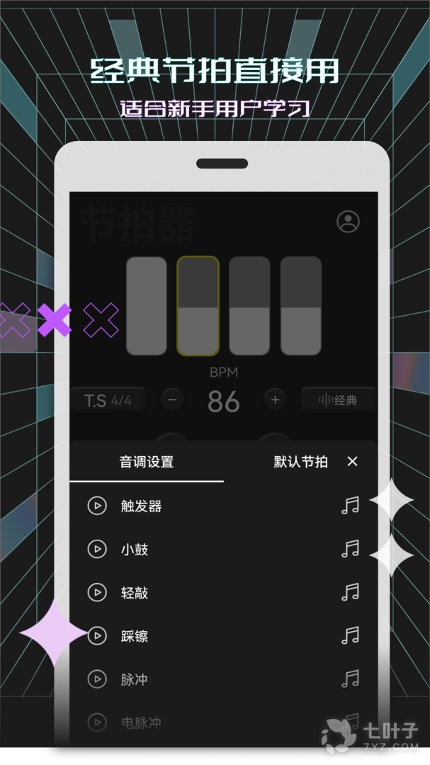 1、电子节拍器,给你最专业的调节功能,多种节奏任你选择,丰富的音色资源任你下载