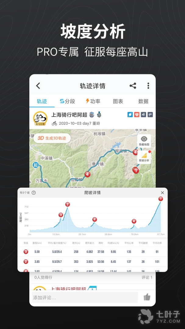 2.实时监测记录速度,海拔,坡度,通过GPS定位轨迹无偏移