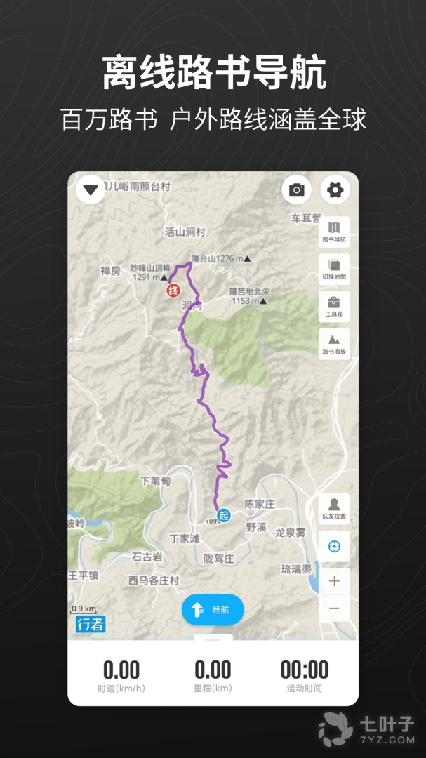 3.地图运动页面可以实时显示路书、队友位置、查看海拔、测量距离,防止迷路,永不掉队