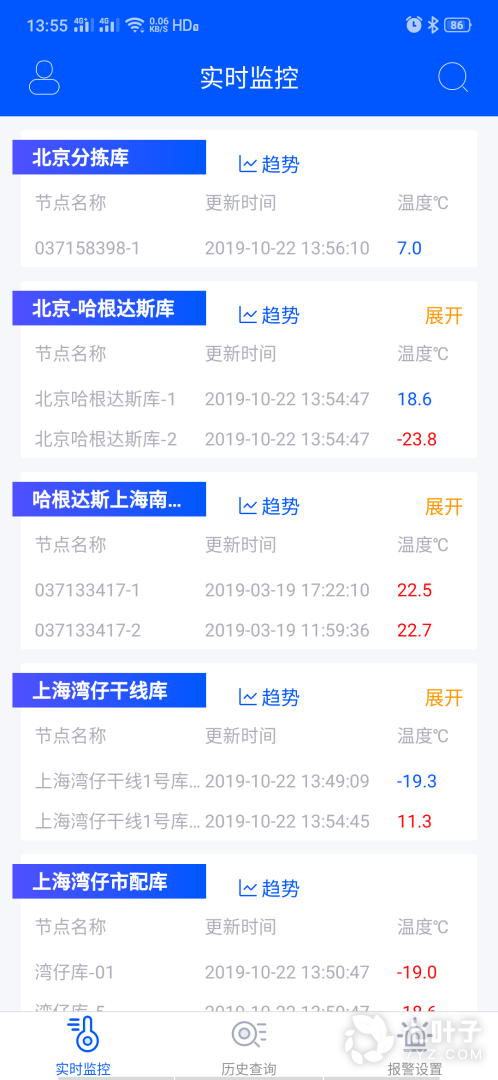 3、捷依冷库最新版历史查询界面可以查看到各个节点的历史数据