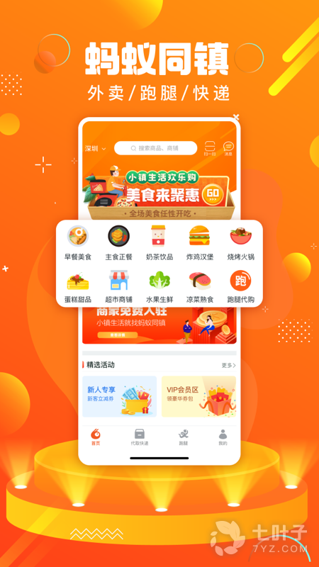 3、蚂蚁同镇app,一款便捷的外卖跑腿服务平台,轻松点外卖,享受更便捷的同城外卖服务,优质商家云集,类型丰富,优惠多多,一键点餐,快速上门