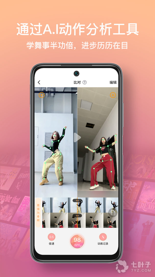 1、通过A.I视觉算法一键同步、舞蹈动作差异,一目了然,学舞事半功倍。