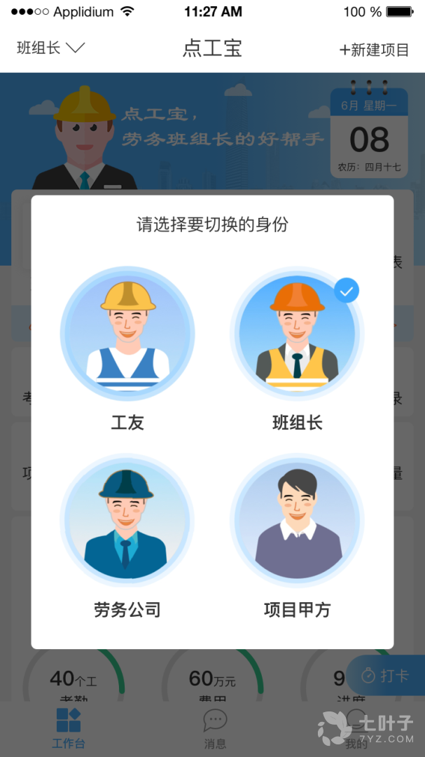 1、典工宝是个专为从事建筑行业、工程项目的员工所打造的一个办公软件,在这个软件当中,用户在进入界面后可以选择自己的身份,不同的身份,它的个人界面也是不同的,你可以在这个软件上进行打卡,甲方也可以直接使用该软件进行打款,让大家可以直接从软件上获得报酬,非常方便