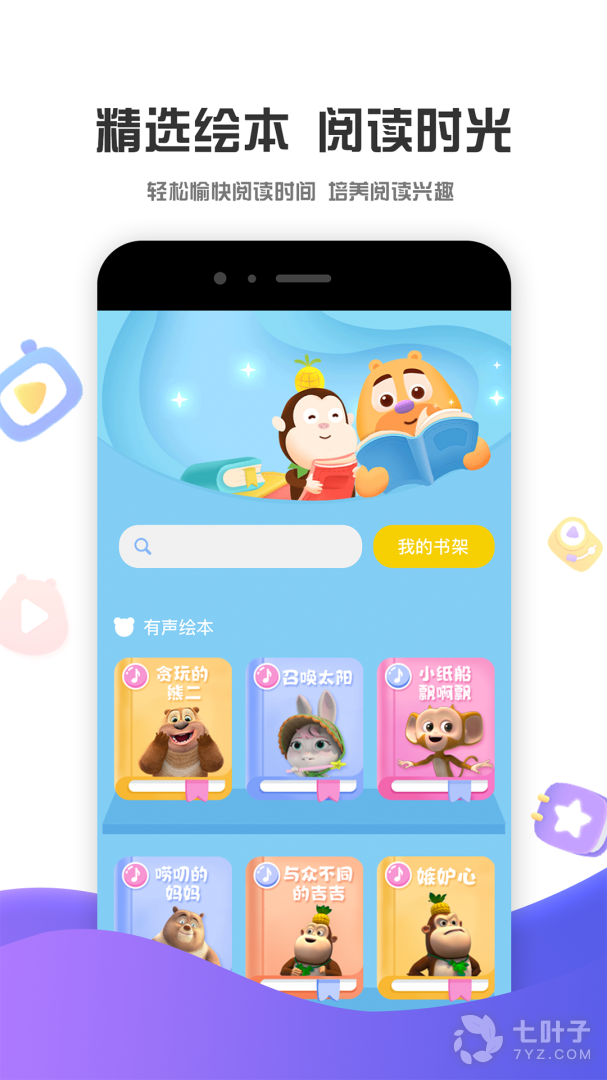 1、好奇时间是专为儿童打造的亲子阅读平台,这里包含了丰富的儿童绘本、故事、儿歌以及精彩动画等等,专注于儿童启蒙教育,陪孩子一起读绘本,听故事,提升宝宝的思维,专注力