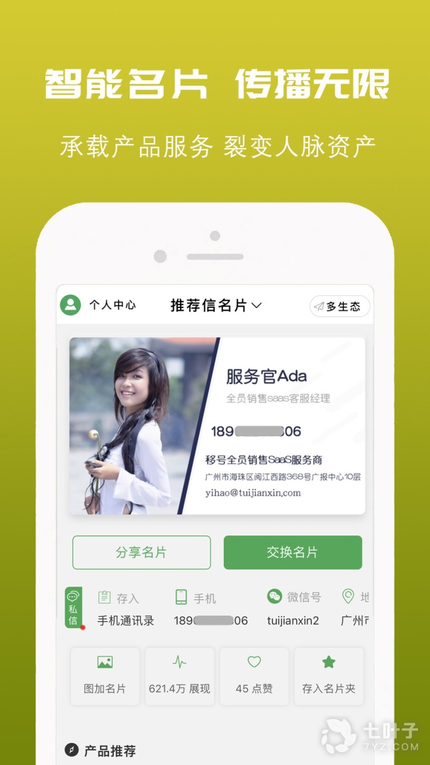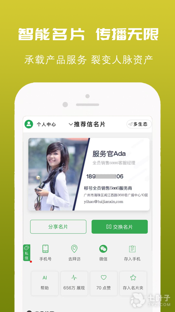 1、轻松生成和管理您的电子名片和个人信息,而且可以同步到手机通讯录;
