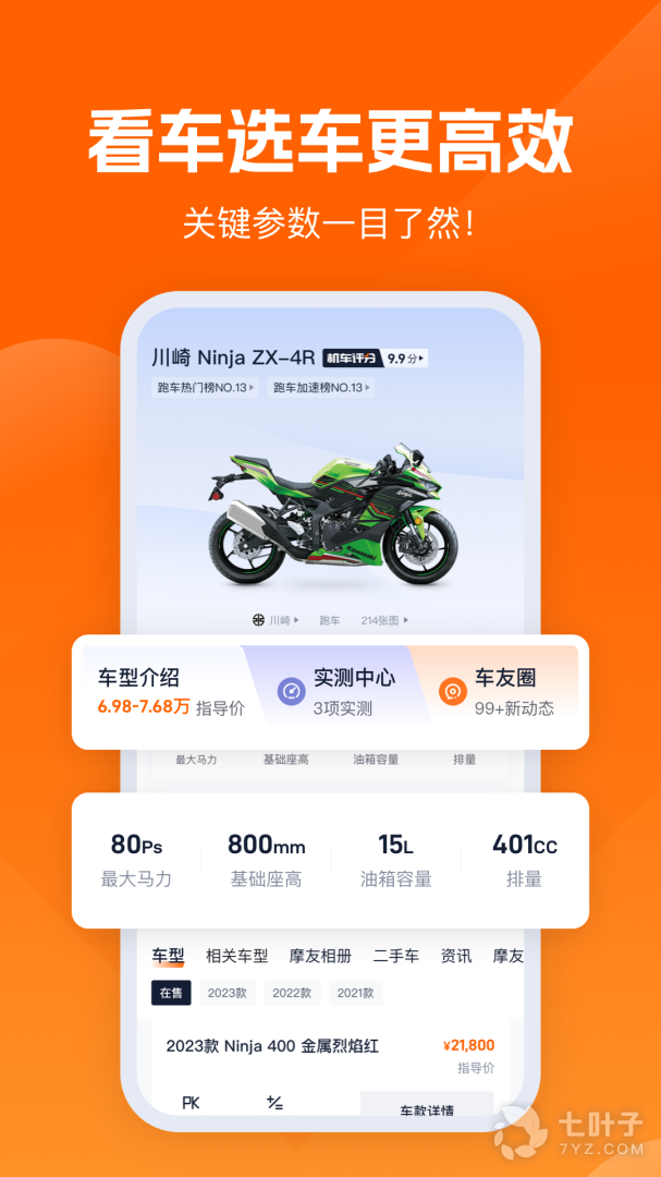 3、机车圈,给摩托车爱好者必备的交流社区,发布最新摩托车相关资讯信息,提供各种摩托车相关资料,更多测评一键分享,内容丰富,随时获取报价、车型、参数信息