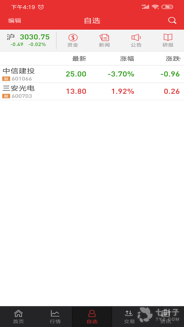 3、自选股中心、行情、新闻、公告、提醒、研究报告,一览无余