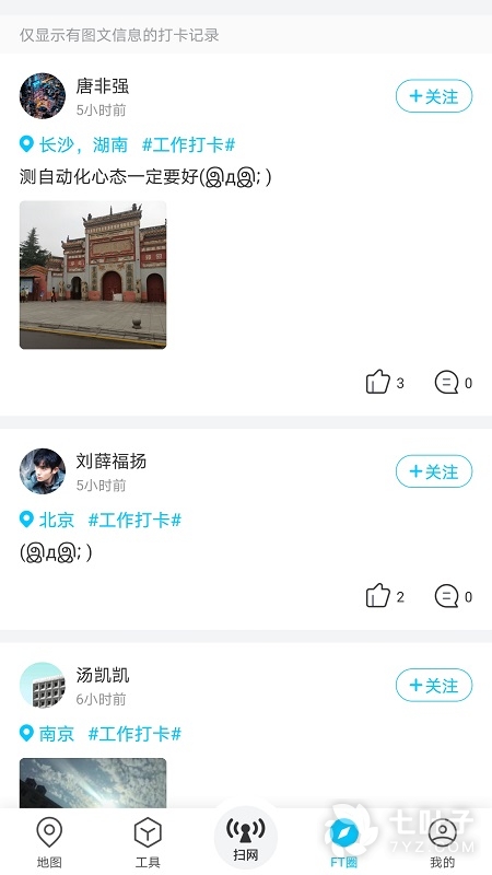 2、使用这款软件可以查看测试人员的足迹,测试工作人员可以在任何地方进行外勤打卡,并可以分享自己的测试心得,需要的可以来春军扫网进行使用