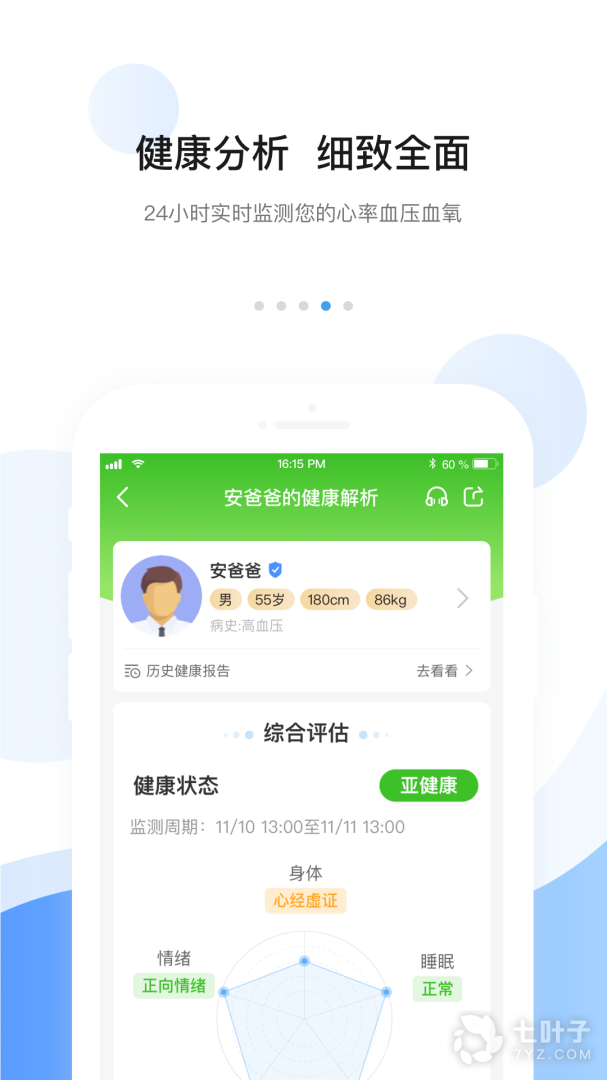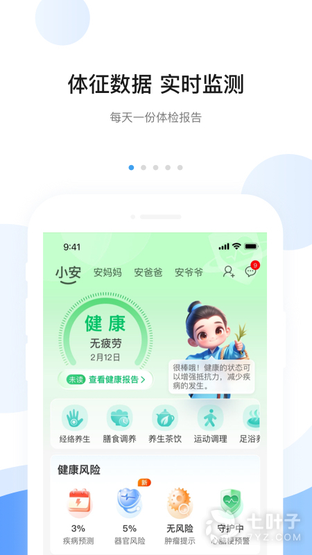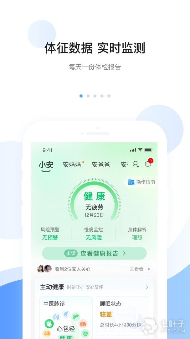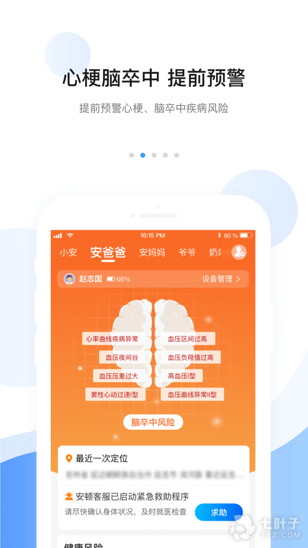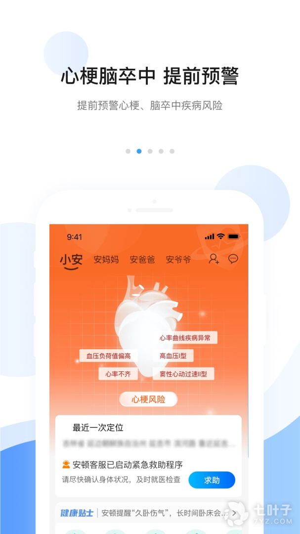 3、家人的健康有你守护,安顿是非常权威专业的健康管理软件,推荐给大家,可以将家人的信息都添加在软件中,随时查看他们的健康数据,针对心脏和大脑有专属的预测,让大家可以及时预防疾病,及早治疗,软件还有在线医生为大家提供咨询服务,帮助大家了解健康知识,呵护全家的身心健康