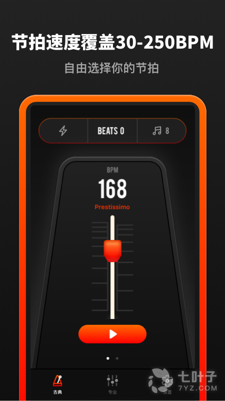 1、音乐节拍器根据所存储的音乐资源能自动分析出所有音符的节拍,特别适合玩音乐的专业人士使用,玩出新高度,艺术无极限