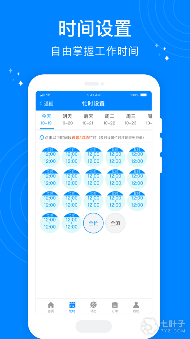 4、时间段显示更清楚,手指点击即可变换忙时的设置状态