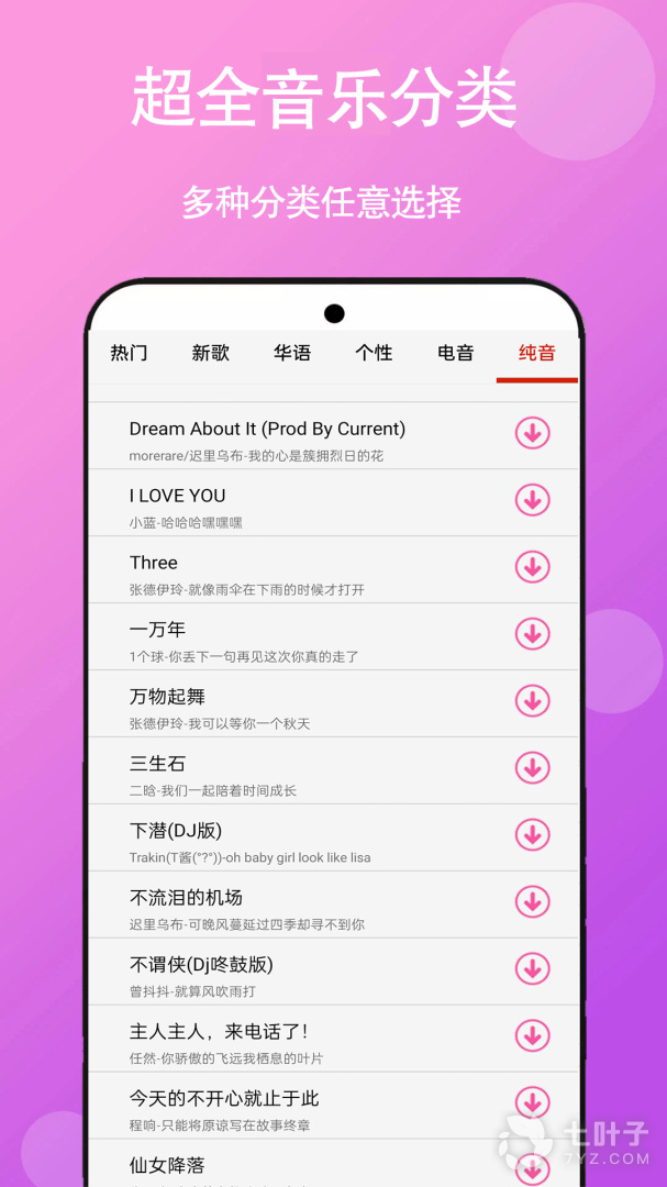 1、在软件上面有着非常多的歌曲资源,用户们可以在线进行播放,软件上面的歌曲分类也是非常的详细,,每日更新起来也是很快,都是一些当天最热门歌曲,还可以设置成自己的铃声