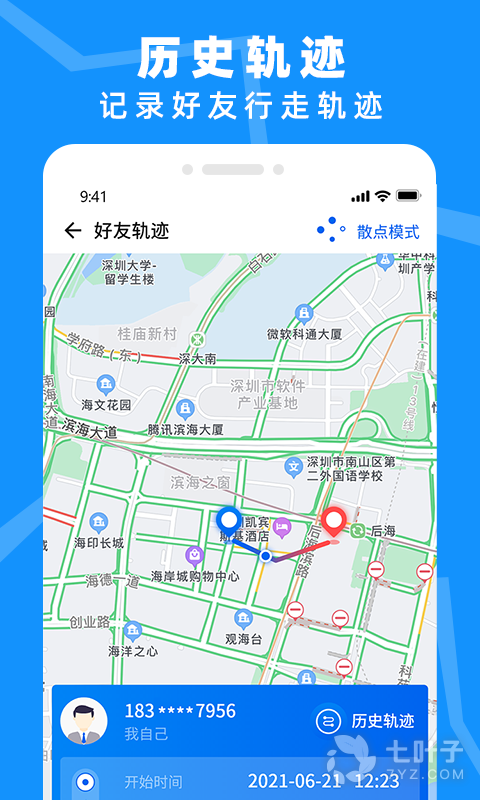 5、「亲友足迹」查看亲友的历史轨迹,守护他的安全。