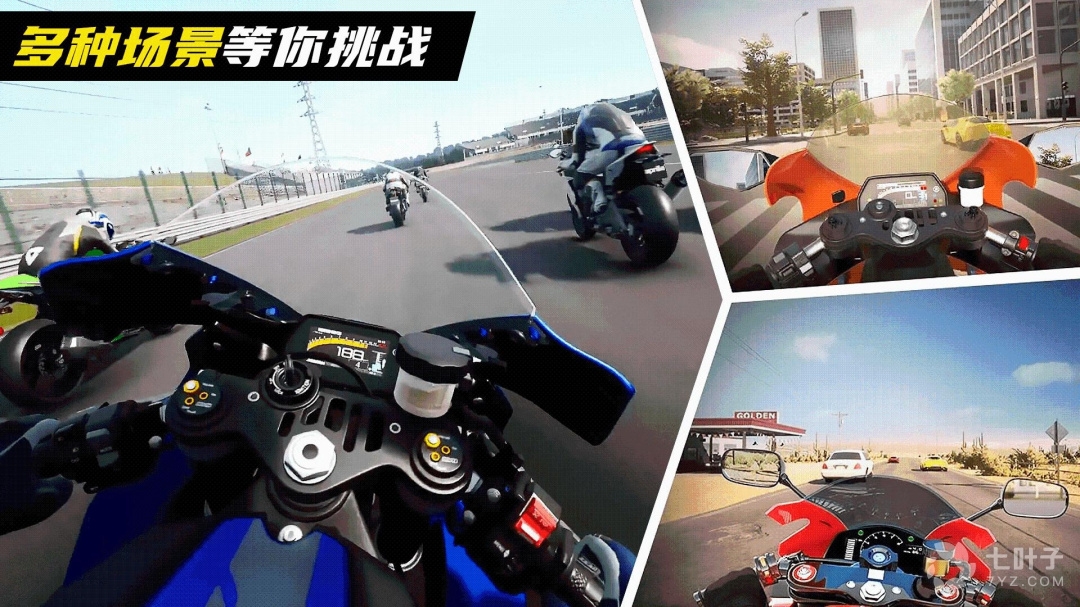 参与激烈的竟技比赛,贏取比鑫胜利,收获金币奖励,解锁更多新式摩托车。
