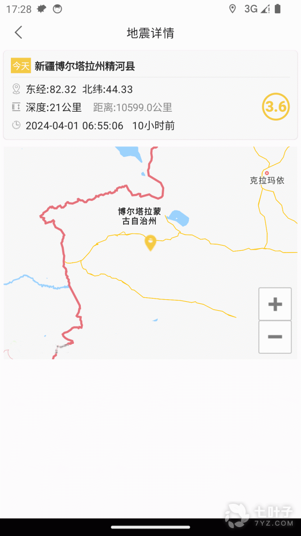 5、用户定位所在城市或手动关注的城市地区发生地震时,会通过推送通知实时下发到用户的手机