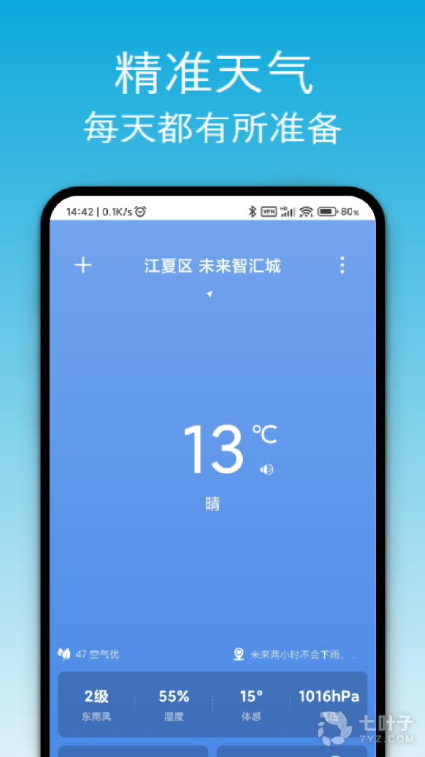 4、始终陪伴着你,更能与您一起知冷暖,在这里也能一起遇见美好,也可以看到你所在城市的每小时天气动态,同时也为你准确更新天气预警