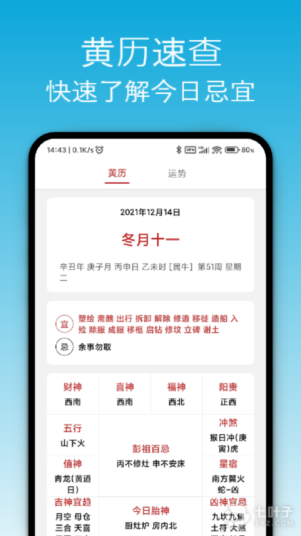 2、简洁、小巧的手机日历软件,支持查看农历、黄历、星座等内容