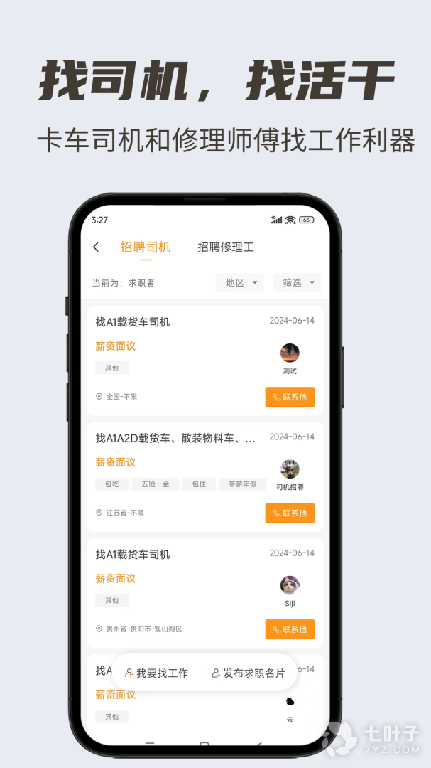 4、卡兄卡弟是贵州我联你联网络技术有限公司针对物流行业从业人员开发的综合信息服务平台,使用这款软件可以快速的发布招聘信息和二手买卖信息,同时提供汽配、维修、保养等服务,需要的可以来卡兄卡弟进行使用