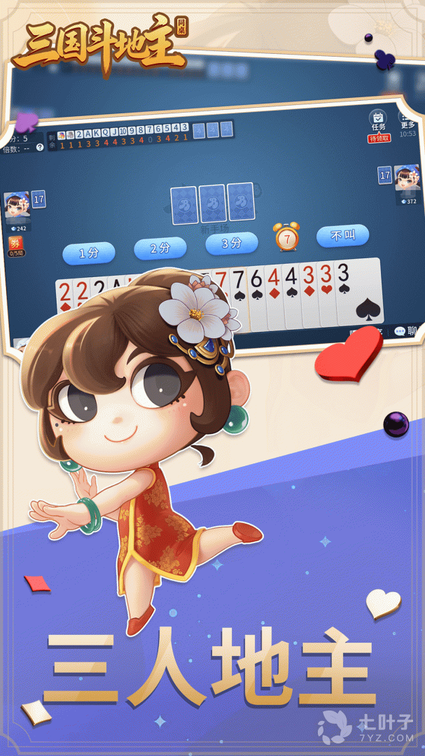 2、精美的游戏画面,全新的剧情打造,在同桌三国斗地主手游中,玩家将选择自己的身份,通过常规的斗地主规则,与对手进行策略比拼