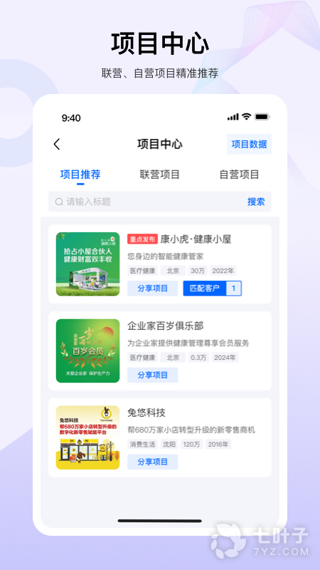 1.项目推荐,按照集团、事业部要求可按需、按月配置重点推荐项目和事业部重点项目,并为一线伙伴提供在老板帮APP内高优先级排序展示。