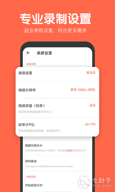 支持录制手机内部声音,无杂音;也支持同时录制声音,还有主播模式同时录制解说画面