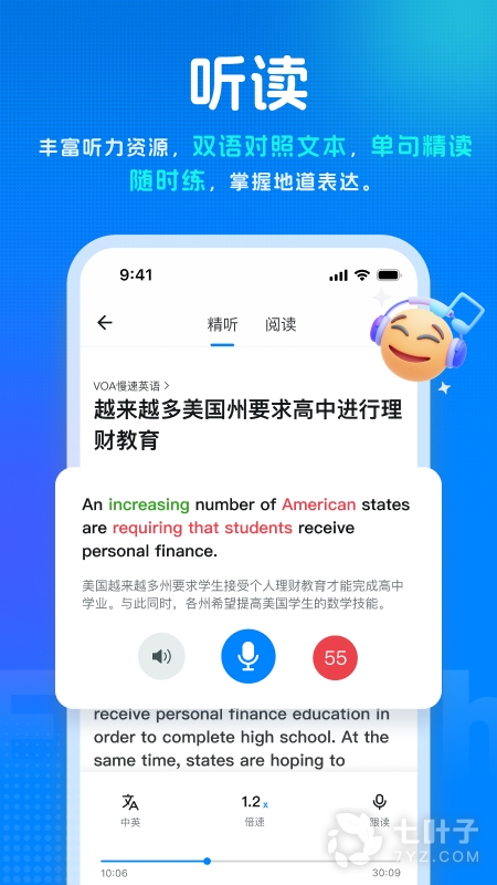 2、听力训练:软件提供丰富的听力练习题目,帮助用户提高听力理解能力,并提供实时的听力评估和反馈