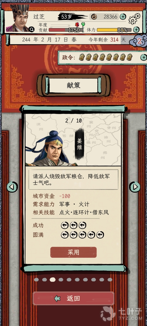 3、你可以选择不同的角色,体验不同的人生。作为武将,你可以征战沙场;作为谋士,你可以出谋划策;作为贤臣,你可以治理地方。结识名臣名将,完成你的人生目标