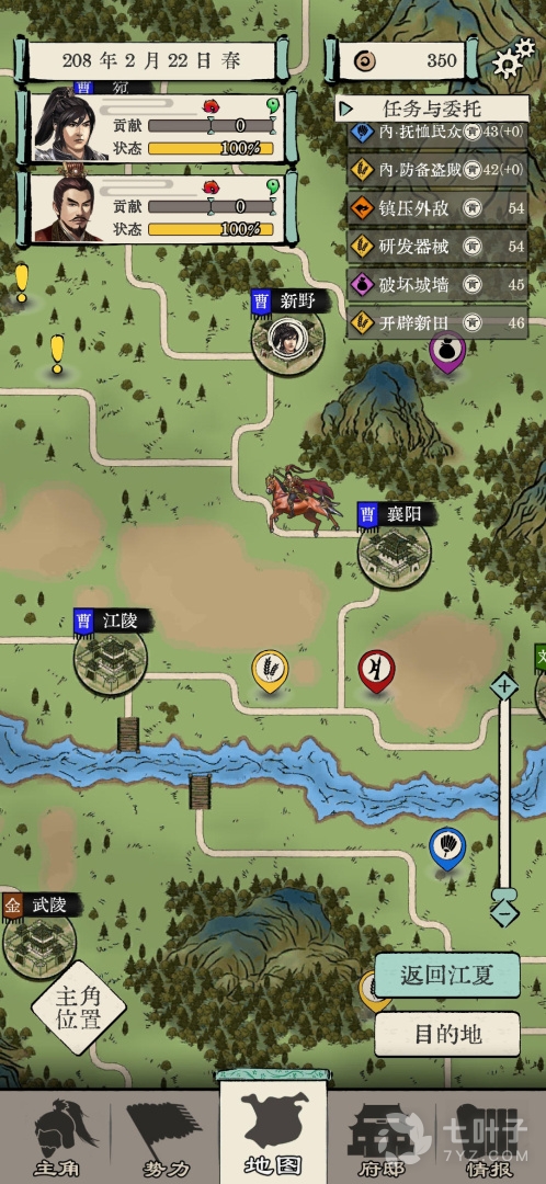 1、招募将领:招募能力强的将领,可以大大增加自己的兵源。每个将领都有一个统帅值,统帅值越高,能够带兵的数量就越多。