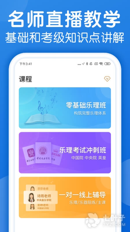 2、它能从零开始系统的教给大家乐理知识,名师直播教学,帮助大家高效的学习
