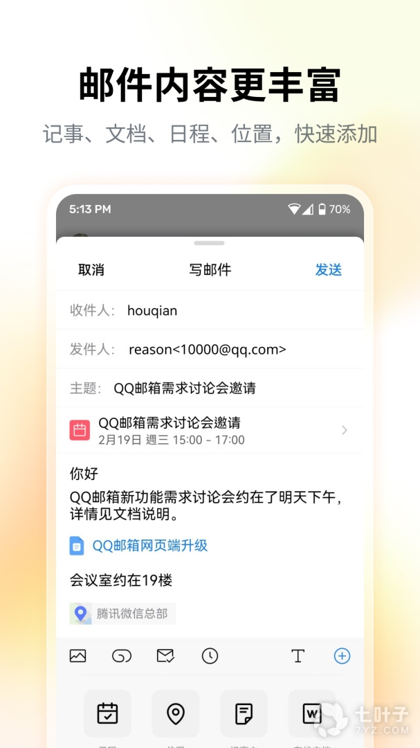 4、QQ邮箱最新版分享,qq邮箱是一款非常实用的手机邮箱服务软件,支持多种格式的文件发送,灵活管理日程,多种内容编辑模式,欢迎下载使用~