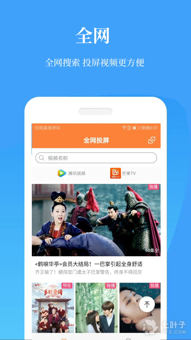 【全网投屏】搜索播放网络视频、音频,嗅探引擎会自动检测视频、音频,只需点击投屏按钮即可大屏幕观看,支持各大视频网站,只要你能搜出来,我们就能投!