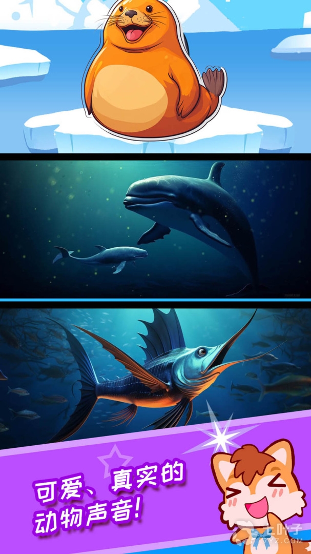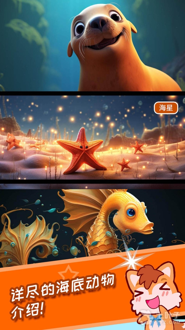3、宝宝儿童海洋王国为宝宝带来了超多海洋生物知识供宝宝在线学习,通过卡通动画的方式和在线动物模拟发声教会宝宝认识更多的海洋生物,也可以培养宝宝的学习兴趣,丰富孩子的想象力