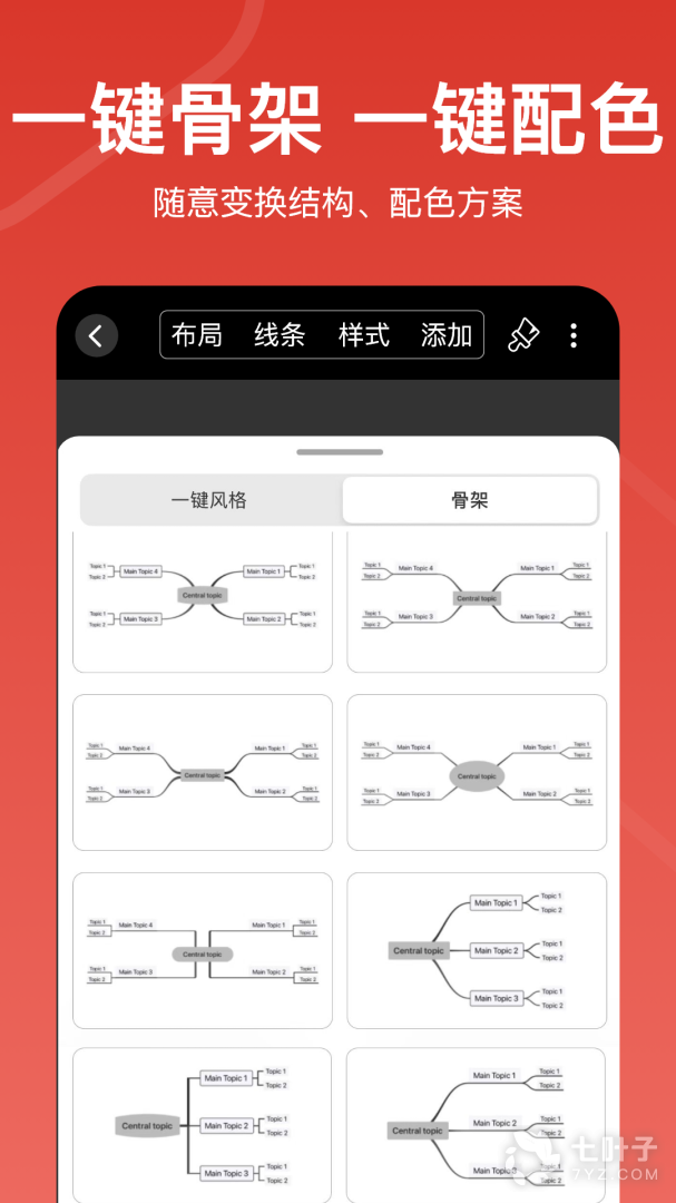 【20多种布局】:思维导图、流程图、逻辑图、鱼骨图、树状图、气泡图、组织架构、时间线、金字塔、统计图、表格、圆圈图