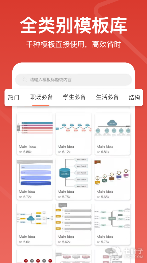 2、界面简单方便,用途大,无论在工作方面还是学习方面都可以用到,还有在线模板一键制作,理清思维做出简单又优质的思维导图