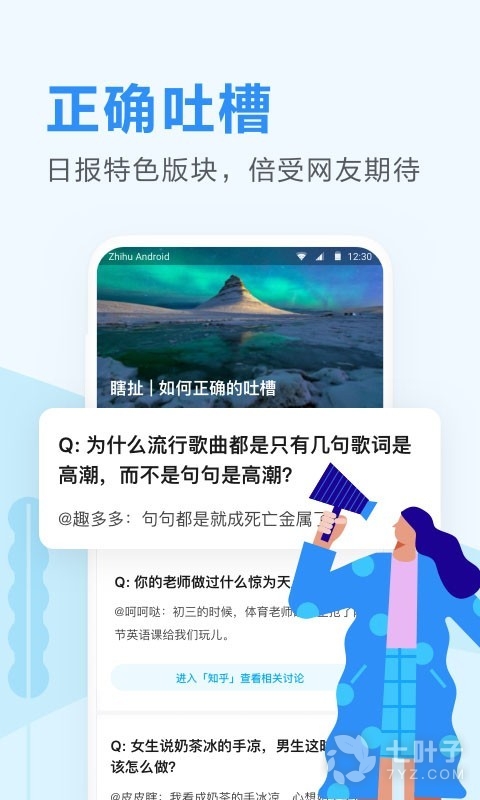 2、知乎日报可以提供来自知乎社区的精选问答和国内一流媒体的专栏特稿。知乎日报能够帮助用户告别浮躁,重获阅读的快感。软件还拥有由业内人和爱好者为你推荐各领域每日最不能错过的文章