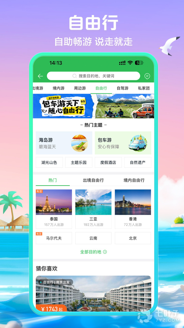 2、该软件给用户提供了最新的旅途信息,最新的旅游计划,周边游,一日游,出国游等,根据自己的时间来选择,还可以查询景点,美食,酒店都是非常的方便,为用户提供便捷的服务