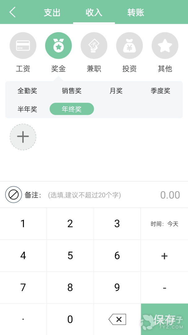 3、记账方便,随时随地都能记账,只要选择账目分类,输入金额就可以记账