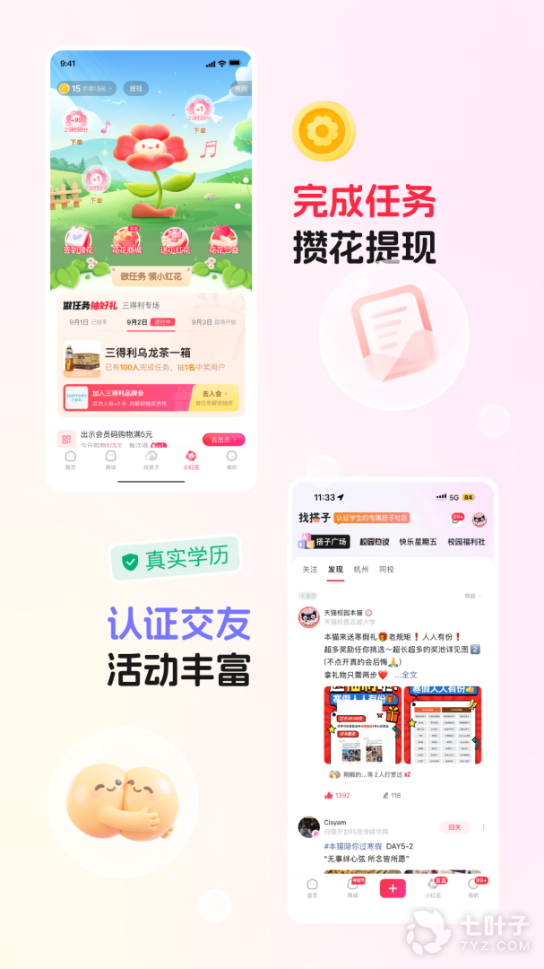 【校园门店优惠多,消费还有小红花】校园门店内丰富的商品和促销活动,满足学生日常消费喜好,每笔消费攒小红花,还能兑换更多超值权益