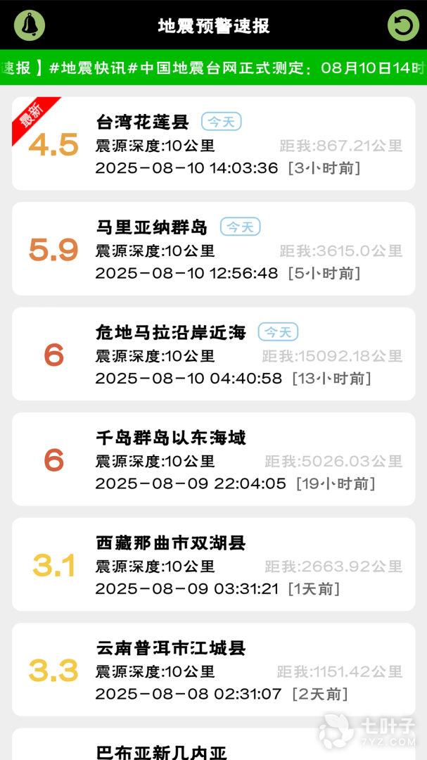 4、实时更新:地震预警速报会实时更新地震数据,确保用户获取到最新的地震信息