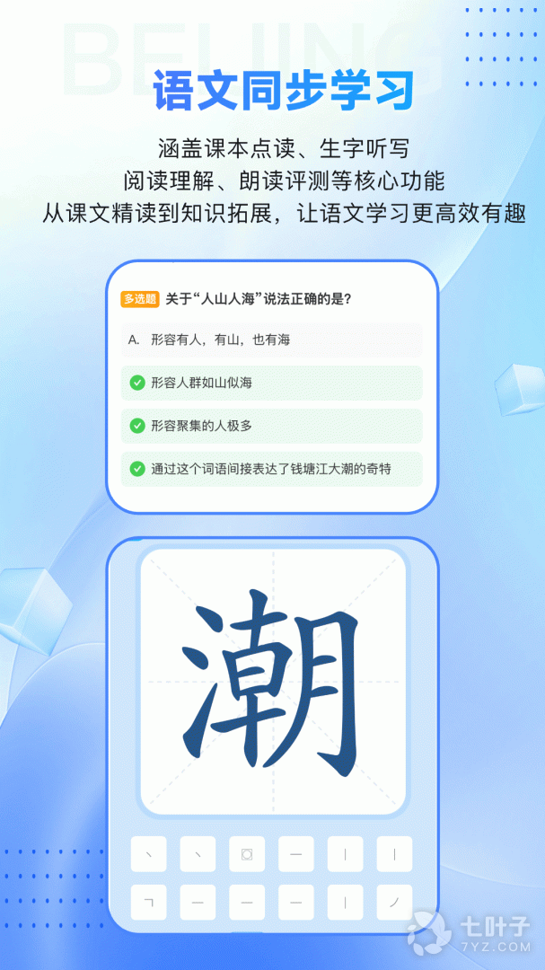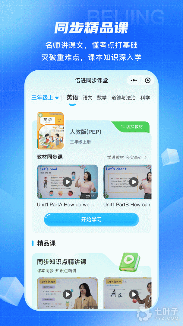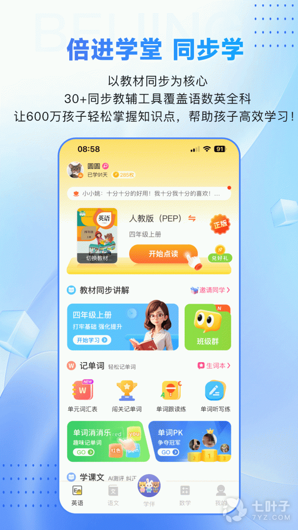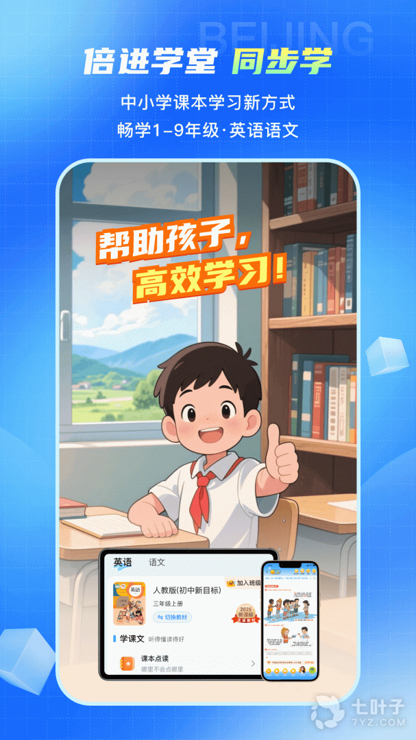 倍进教育旗下的学生学习的教辅工具,辅助孩子学好语、数、英及课外拓展学科,不断为用户带来更好的学习和使用体验,让家长辅导孩子更省心,让老师管理孩子更高效,让孩子发展更全面!